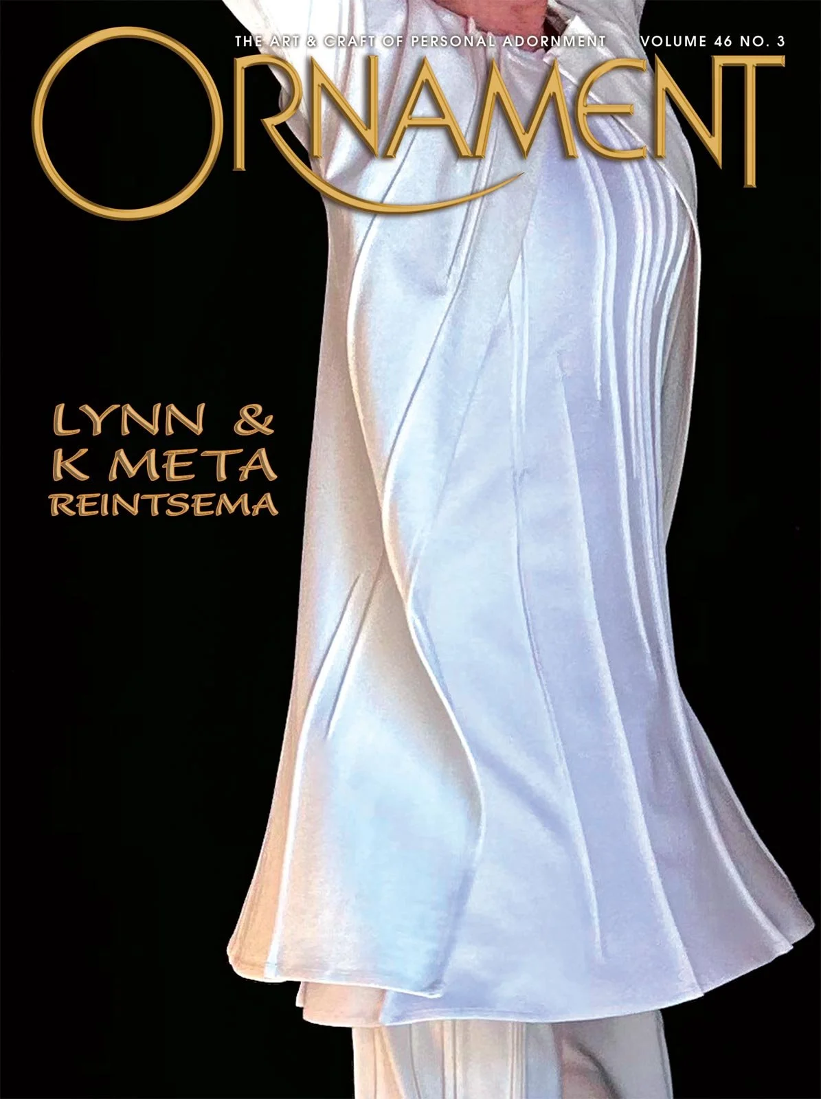 Patrick R. Benesh-Liu delves into the more than thirty-five years of making clothing by the Reintsema sisters, Lynn & K Meta. From their artist mother and the complicated example she set for the two daughters, who found a path together on the craft show trail, their elegant and structural art-to-wear speaks to the deep voice of the hand.
