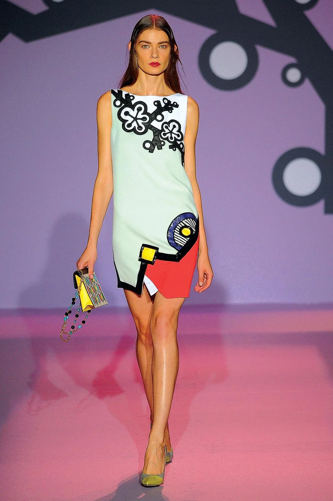 WHITE, MINT, AND SYNTHETIC CORAL PATCHWORK TRIPLE CREPE SLEEVELESS SHIFT DRESS with cherry blossom-inspired and Memphis-inspired appliqués, 2015. Promised gift of Andrew Gn. Peabody Essex Museum. Photograph courtesy of House of Andrew Gn.