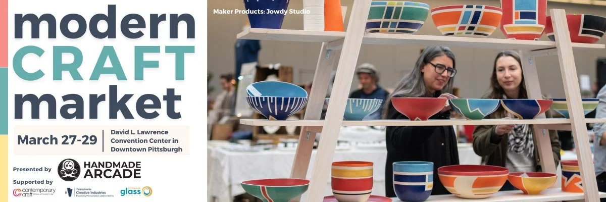HANDMADE ARCADE hosts its first Modern Craft Market from March 28 - 29, with a Preview Party on Friday, March 27. Since 2004, Handmade Arcade has been hosting craft fairs in Pittsburgh, providing a marketplace for local and regional craftspeople. The 2026 Modern Craft Market will feature over 100 makers and artists representing twelve states, including Pennsylvania, Virginia, Maryland, Connecticut, Ohio, Maryland, Michigan, Wisconsin, Rhode Island, North Carolina, Maine, and New York. This new Market is supported by Contemporary Craft and Pittsburgh Glass Center, and is a juried shopping event celebrating where traditional craftsmanship meets contemporary design.